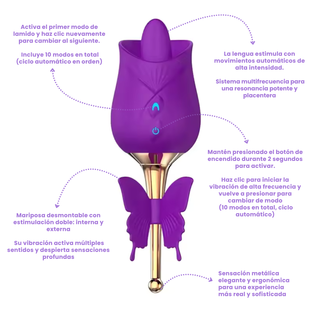 Nuestra Rosa Pikante™ cuenta con 10 funciones de vibración para explorar distintas sensaciones según tu ritmo.